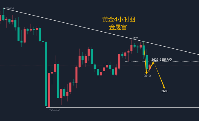 张津镭:黄金震荡一周,下周操作建议 昨日黄金走了一个回落行情,亚盘开盘波动不大,一直于2630上下震荡,直至欧盘前刷新日内高点至2638美元一线。给的空单完美进场,随后金价开始回落,美盘刷新日内低点至2610美元,空单自动止盈于2620-2615一线。最终金价是收盘于2619美元一线,日线收于一根小阴线。 本周地缘政治紧张局势不断升级,支撑了金价的反弹。以色列对也门胡塞武装目标的打击,以及俄罗斯无人机对乌克兰的袭击,都增强了黄金作为避险资产的吸引力。不过美元指数连续第四周上涨,限制了金价进一步上涨的潜力。受强劲的美国经济数据和美联储2025年降息幅度较小的预期推动,美元走强令黄金对非美元持有