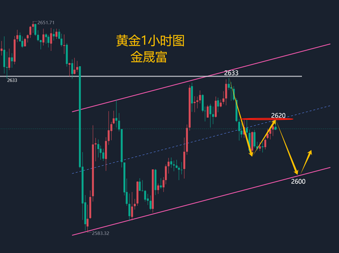 金老虎:高山****遇知音,金价遇“知音”还是“异己” 春暖花开鸭先知,落花有意随****,而****无心恋落花,体会到上涨的梦境,也体会到下跌的梦魇,交易总是虚伪和假设进行教育,就好比人一样,再重要的人,只要让你失望多了,也就没有那么重要了,再重要的行情,每次都让你受伤,次数多了,你的心态就平和了,其实交易的最终结果就是阴阳,热胀冷缩,人性,趋势结构形态,加上顺势而为,了解其中一二,其实交易本质就没有那么难了; 黄金:简单回顾下,在经历上周的反弹后,黄金昨天也是早间拉升到上方2633的形成跳水,价格最低也是跌到了2608区间的位置,也是破位了昨天早间低点位2617的位置,昨天的下跌,我是这
