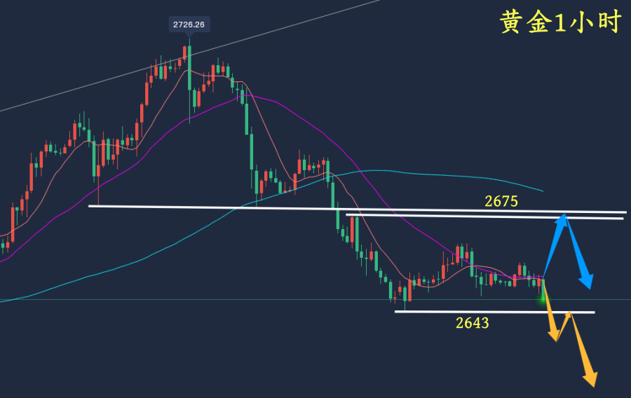 交易的第一步就是定势,确定趋势和方向;第二部才是择机,选择合适的机会和波段,找准进出场点位。消息面能决定市场方向,技术面是交易手段,一个是道,一个是术。交易没有百分之百,理性看待冷静思考随时调整,这个市场你越想赚钱越亏钱,越想亏钱越赚钱,这就是为什么很多人做模拟盘赚钱,做实盘就亏钱的原因。 昨日黄金基本走了预期,和锦晟周末分析一致,周末特意强调周一开盘不要直接追空,先反弹的概率很大,行情走出来了,2663—2664下跌验证了我的布局,利润也有10+美金。整体来说行情走的比较简单,都在意料之中,交易也比较顺利,大有大赚小有小为,操作质量远比数量更重要。 行情方面,黄金昨
