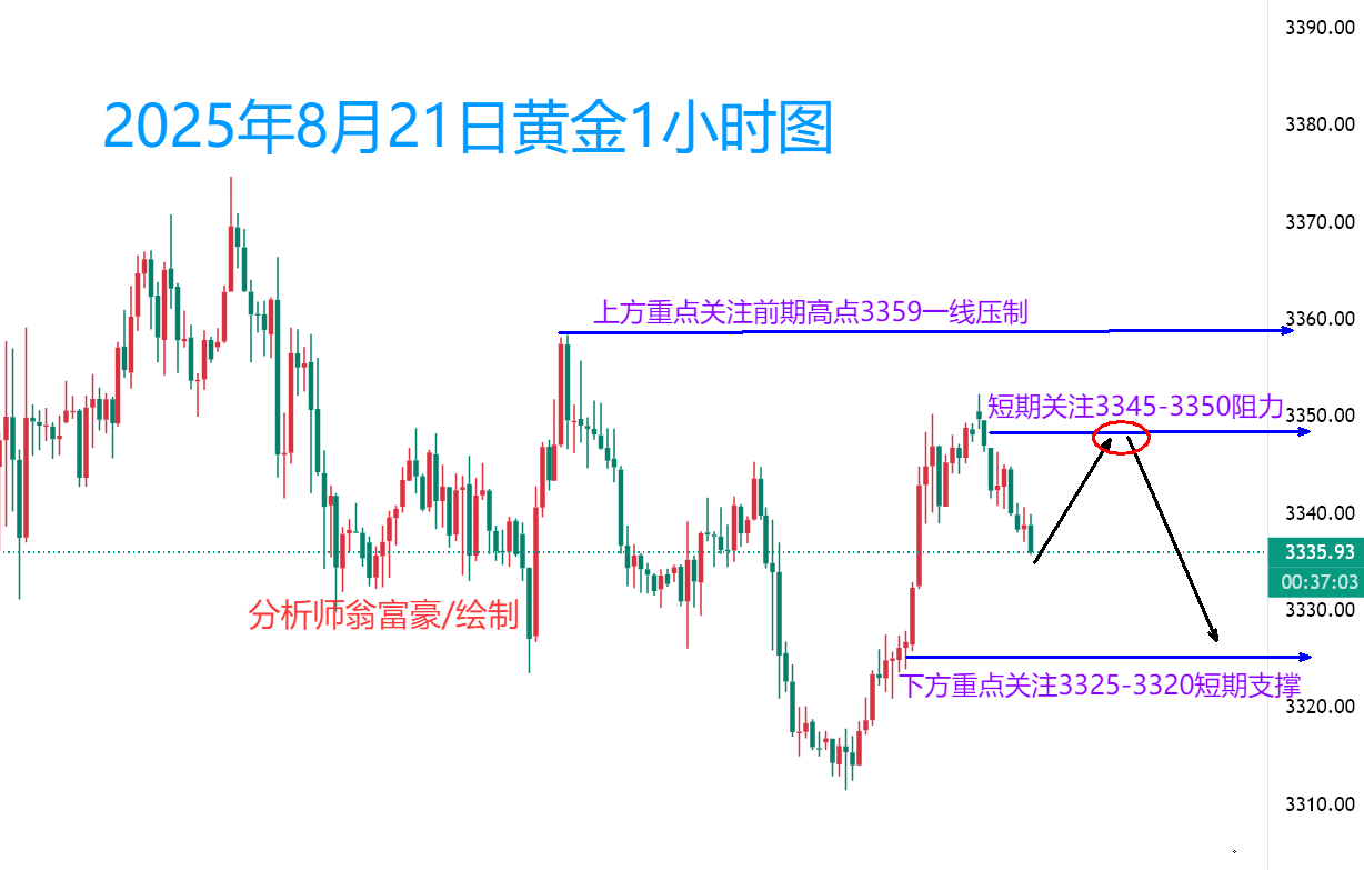 昨日周三美盘,特朗普突然发文,强烈要求美联储理事库克立刻辞职,但库克毫不退让,称不会因推文质疑就辞职,会严肃对待质询并收集信息回应。此后,美元下挫,黄金则从3330附近冲至3350高位。 黄金昨日行情一路走高,强势突破3350关口,涨幅达40美元。此前3325 - 24被视为弱势延续的关键位,两次下探未破且收盘均在其上,表明欧盘时段黄金抗跌,为调仓出局提供了机会。61.8%回撤位毫无阻碍地被突破,双顶位置虽有回撤但幅度不大。美盘中后期,在3339 - 38区域做多可顺利止盈。当前凌晨修正低点及38.2%支撑位附近是多头介入点。欧盘走势很关键,若欧盘滞涨,多单需及时调仓,转而关注震荡行情,上方