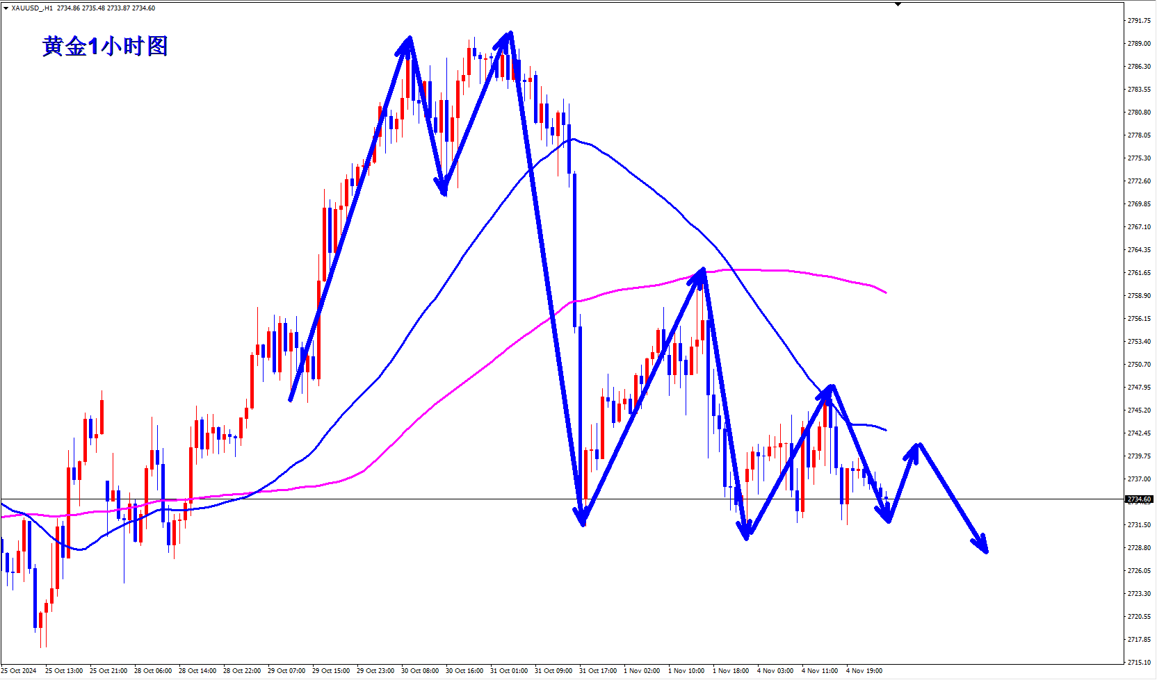 进场理由一定要和出场理由一致,当进场理由被否定后一定要坚定出场。不管是不是出错了,此时也要出场。有时可能出错了,但是你不要可惜,只有你坚持这个策略,在你以后做单的时候才能有所收获,只要你长期坚定的执行了这个策略,才能够****以后在一大波行情时候,拿单拿得长久,获利获得丰厚。 消息面: 周二(11月5日)亚市早盘,现货黄金延续上一交易日的窄幅震荡走势,目前交投于2734.64美元/盎司附近。金价周一接近收平,收报2736.48美元/盎司,因美国大选的不确定性近在眼前,市场观望情绪渐浓,投资者对有争议的选举结果和政治紧张局势的可能性进行了定价,同时投资者还密切关注本周晚些时候的美联储政策会议。