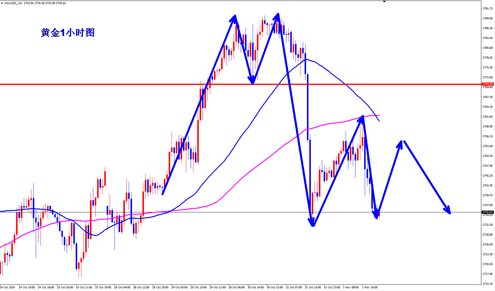 人生最短的路不是自己去探索,而是踩在别人的成功之上,路就会平坦许多。成败上千的亏损,如果还唤不醒你,那么你想让失败伴随你多久? 金融这条路,看到太多的血腥教训,也看到太多的人亏损离场,也看到很多人挑灯夜读,却极少有人去分享自己真实的历程。 十年不短,十年不长,但十年却有很多的成长故事和实战技巧,足够让你不在经受那些不必要的痛苦。——柳沁雯。 >>>>黄金走势解析 经历上周金价破位新高而后非农数据压制回调,最后回归震荡收官。从单一形态分析,黄金大周期的上涨形态还没有完全的破坏,依然有上涨破新高的概率,下方2732-26如果破位,那么多头可能会稍微放缓点。从数据上看11月5日大选,和8日凌晨利率