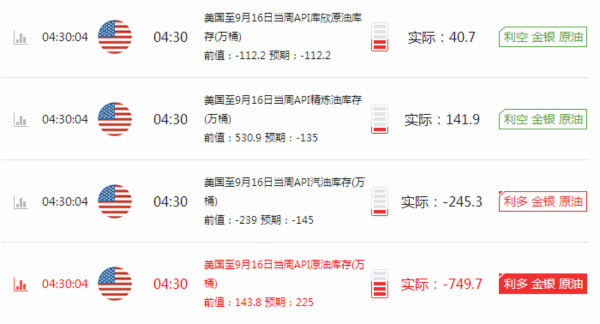 消息面 API上周原油库存意外骤减,但在库欣原油、精炼油库存录得上涨的情况下汽油库存降幅较大,表明汽车燃料油承运商ColonialPipeline管道泄漏还是造成了不利影响;数据公布后,WTI原油跳涨。随着今日早间API原油库存录得下滑,油价短线走高。 阿尔及利亚能源部长Bouterfa表示,国际能源论坛于9月28日下午闭幕后,OPEC将举