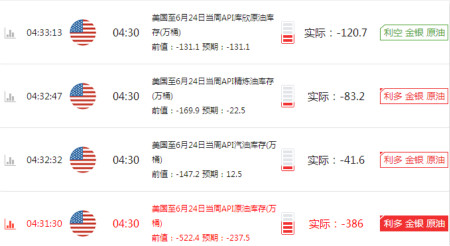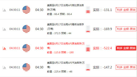 【消息面解析】 周三(6月22日)亚市盘初,国际油价继续小幅震荡上行,隔夜美油再次站上50关口,攀升至七日高位,虽然此前美元走强一度令油价承压,但因API最新数据显示,上周美国原油库存意外大减522.4万桶,录得半年来最大降幅,强势拉升油价实现V型反转,此外汽油价格攀升以及供应中断忧虑也为油价带来一定支撑。 1、API库