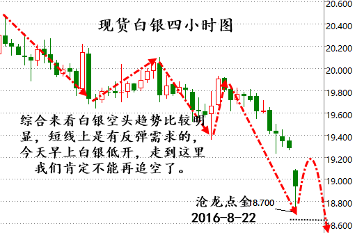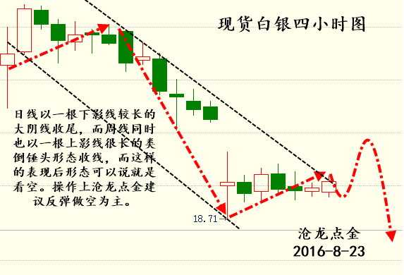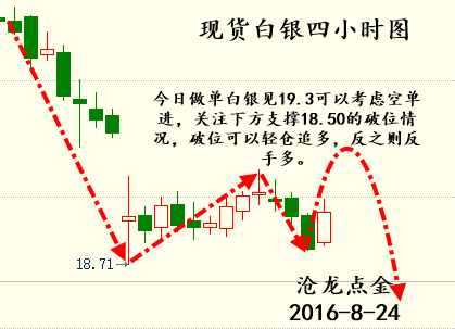 沧龙点金:8.24白银反弹乏力回落继续,现货白银长江银操作建议 美国经济数据疲软,美联储纪要意外鸽派,这些利好都没能推动白银冲破此前阻力位,可能会导致部分中长期投资者获利回吐。 下周五将召开的杰克逊霍尔全球央行年会上耶伦的讲话成为市场关注的焦点。但考虑耶伦一向谨慎的风格,不太可能释放出特别明确的信息,并不