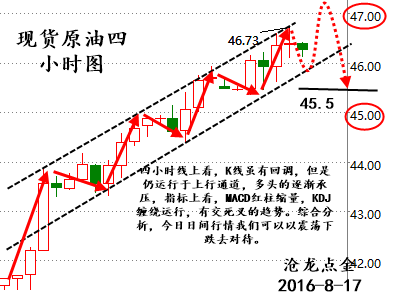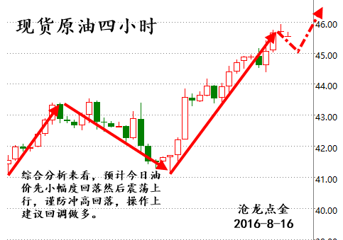 沧龙点金:美元疲软原油绝地反击,现货原油沥青今日操作建议 消息面 本周五美国将公布零售销售数据。一项调查显示,周五零售销售预料按月上升0.4%。另外,投资者还将关注8月26日美联储主席耶伦在怀俄明州杰克森霍尔(JacksonHole)美联储年度研讨会上的讲话。 美联储官员发表加息言论支撑美元。美国旧金山联储主席威廉姆斯Wi
