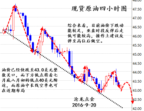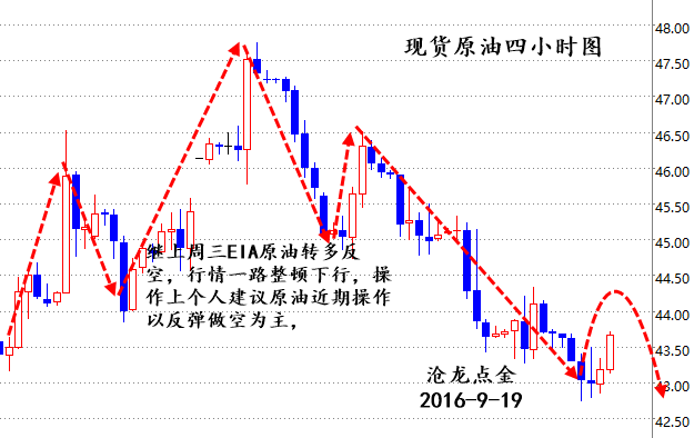 再中的日头也有西斜的时候,再弱的震荡也有加速的瞬间。被蛇咬过的人,会分外小心。我从不是恋旧的人,尤其对过后的行情,哪怕像上周一样全部止盈,我深知总是向后张望的姿势,不但会阻碍前进的步调,还会容易把脖子扭伤。 国际消息面-- 美国WTI原油10月期货周一(9月19日)收涨0.27美元,或0.63%,盘中最高触及44.69美元/桶