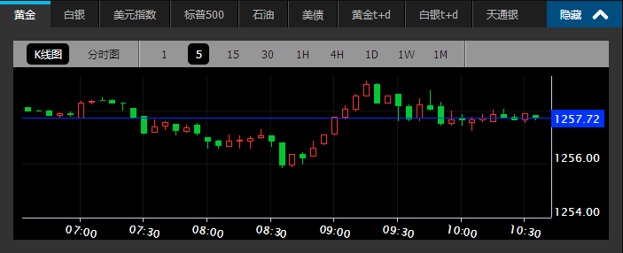 国际现货黄金周四(10月13日)企稳反弹,盘中一度突破1261元重要关口。美元从七个月高位回落,空头回补正稳步令金价铸底。中国贸易数据远不及预期推高市场避险需求,全球最大黄金基金本周来首度增仓黄金。 黄金周四亚市早盘开于1255.46美元/盎司后短暂下挫,录得日内低点1249.71美元/盎司后震荡上行,走出一段小多行情,录
