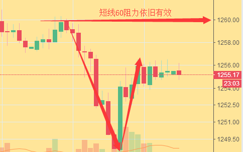 美盘黄金止跌反弹,力度有些薄弱,目前徘徊1255美元关口附近,这里1255你不要追高,也不去空!追涨顶着压力不可取,入空下方空间有限!下午我们1257布局空单收割十美金的利润,算是大获全胜。所以没有必要为了狭隘的利润空间而冒险。因为,我们知道想要什么,就是等,等待给予趋势机会买入!空头无论如何跌,1245-43这里不好破,就是布置多,直到扫了1237损为止,不扫就是坚定的看1265-82,以及1309破掉去1360(中长)。 日内总结 说起日内黄金行情,我们不禁充满自傲感。早间黄金一直围绕开盘价1257附近震荡,午间我们看好黄金将会弱势下行,因为前日黄金在破位1260攀升至1266一线,虽然