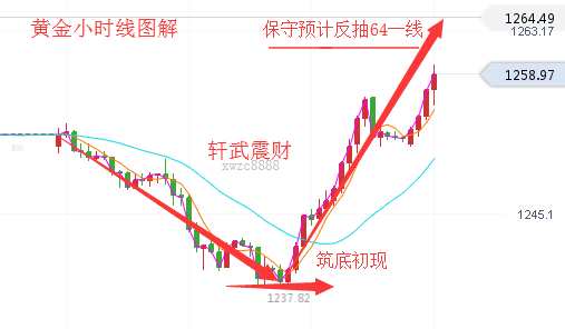 早间1240抄底,大赚1249走人!晚间突破此位后攀至新高!短线阻力1254已破,上方进一步目标价位将是1264!虽然目前金价止步1256关口,但空头怕是一去不复返。周线双底已形成,技术性反抽合理价位是在1264!甚至更高,但更高我们不去臆测!把握眼前的才是最实际!当前盘面1248-1250已成多头延续上涨的反向支撑点!看涨!是我们下半周的操作思路和策略! 后市金价观点 黄金日内的行情小幅下探后,出现了一波强势的反抽,破位1246后,黄金直接拉升到1250一线,算的上是近期以来最强势的反抽的行情了,目前来看,底部初现,当然,目前还不能完全确认底部已经出现,我认为