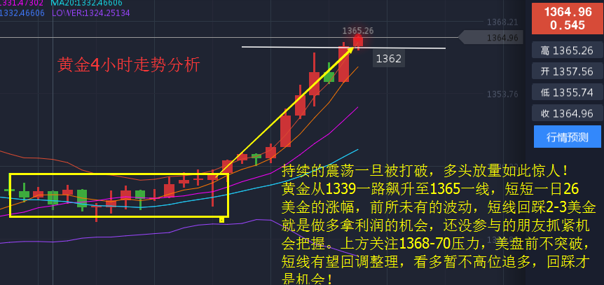 1.24美元90大关被终结,非美货币全线看涨,黄金回踩1339多 想要得到,你就要学会付出,要付出还要坚持;如果你真的觉得很难,那你就放弃,如果你放弃了就不要抱怨。人生就是这样,世界是平衡的,每个人都是通过自己的努力去决定自己生活的样子。做投资更是如此! 【现金为皇,顺势为王,点位为相,止损至圣】 温馨提示:在线