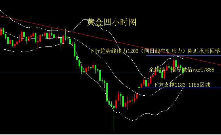 余修镕:8.22金评 黄金反弹高位受阻 反弹并非反转 后市建议 夜深了,我是你们的老朋友余修镕! 在这个市场中,每一次黄金的价格变动,都会带来不同的观点争执,有人认为要上升,有人就认为空单布局的恰逢其时,执行力缘于自己的交易体系。不管如何变,别人如何说,你都不会去动摇你的观点。如果左右摇摆,啥观点都是白搭,涨了看多,跌了看空,总是追着行情跑。 在黄金下行趋势中,黄金空头仍具有整体近期技术优势。黄金多头在突破了1190美元/盎司后,黄金短期还有进一步反弹的需求,上方关注1198的压制和1203-1205的短线极限位置。1204附近也是日线布林带中轨阻力压制,同时也是近期下行趋势线压力位附近;此