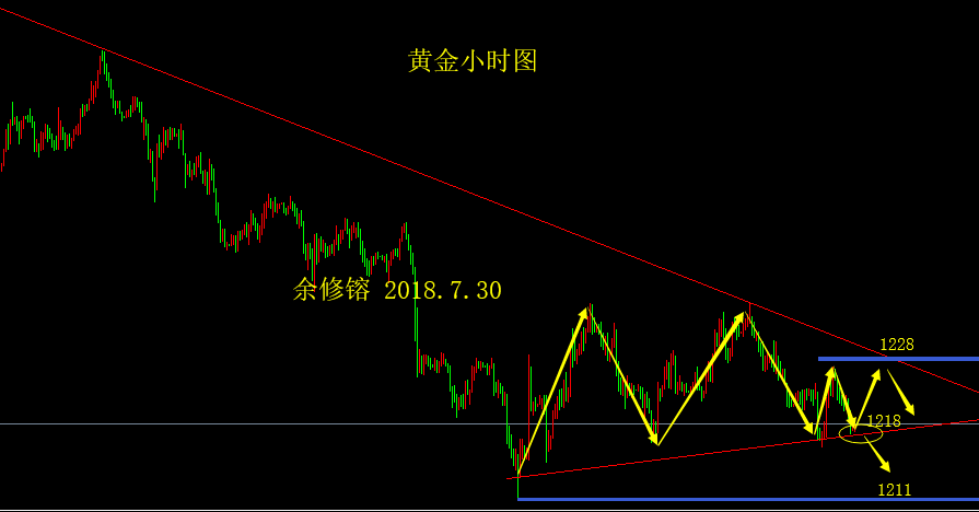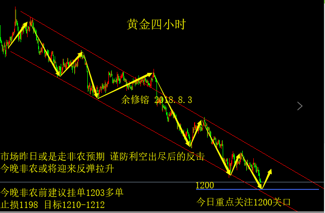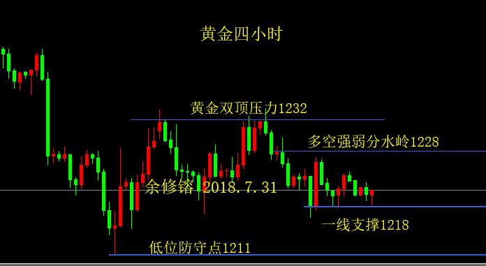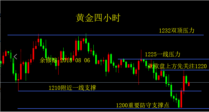 余修镕:8.6 千二关口非农助推黄金短线上扬 本周能否延续一扫颓势 一般指导说是早上7点到第二天凌晨2点,但是在我的记忆里却好像很少有准时休息的,熬夜到凌晨6点停盘是很常见的事情,不是不困,更不是失眠,只不过是学员手中还有单子,在出于不出,多空之间纠结,徘徊。做指导的几年里,可以说大部分夜晚都在陪这样的朋友度过。我可以深深体会到你们的那颗焦急的内心,所以我慢慢的习惯了熬夜,习惯了用吃饭的时间去写完一篇文章,为有缘看见的朋友送去一份帮助、一份希望,哪怕是一颗定心丸,我都感觉这份帮助是有用的。 8.6(周一)黄金行情分析: 黄金上周延续震荡下跌,周初反弹1228附近承压走跌,破掉前一周低点后刷新