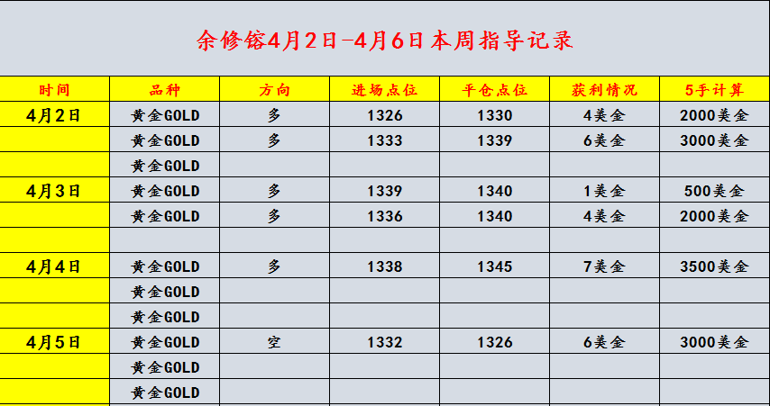 余修镕:4.1黄金1320止跌震荡 非农周多头或将再次崛起 前言: 成功不一定有捷径,但一定有方法。我们不要当别人奇迹的听众,而是自己行动起来,做奇迹的创造者。机遇总是垂青于有准备的人,奇迹常常发生在有眼光的人身上。千里马常有,而伯乐不常有,选择很重要。我想说你是幸运的,因为你遇到了我;我也想说你是不幸的,因