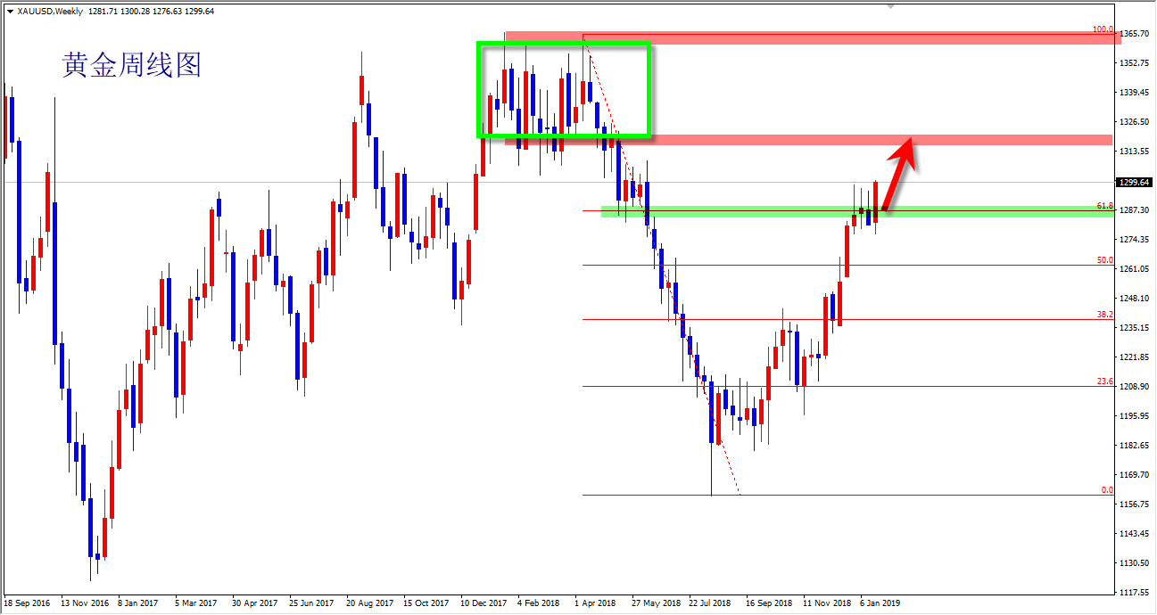 今日是腊月二十三,祭灶扫尘的日子,年关将近,一年了,许多人也早已踏上了归家的旅途!黄金在年尾也终于突破了前期维持3周的震荡,突破了压力,重回千三关口之上,打开新一轮的上涨,在年前的最后一个交易周里,黄金这是提前撒红包的节奏! 川普宣称与美国国会达成临时融资协议,决定暂时开门三周至2月15日,修建边境墙经费问题还需要继续谈判,HEJ报道称,美联储官员正在考虑提前结束资产负债表缩减计划。纽约联储GDPNowcast模型预计,美国第四季度GDP增速预期为2.57%,与此前预期一致。 美指至下破中期上行趋势线后,最低到达95一线重启反弹涨势,在上周的前半周一直处于强势向上,在周五取得高点96.68,