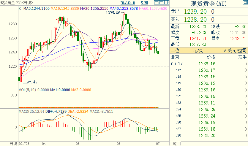 比利时布鲁塞尔恐袭,金银能否借势翻身,6.21黄金白银原油操作建议! 黄金周二(6月20日)在下跌至五周低点后企稳,金价窄幅盘整。亚市早盘开于1242.75美元/盎司后,金价短暂震荡走高后小幅回落,金价徘徊不前,欧市金价缓慢上升,窄幅交易,市场较为谨慎。美市盘中最低下探至1241.00美元/盎司,创自5月17日以来最弱;在美联储