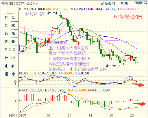 郭俞妍:空头无视数据9月15日现货原油分析附解套法 周三(9月14日)EIA库存意外减少令油价短暂反弹1美元,但很快重回跌势,至郭俞妍撰稿,最低下探43.81美元,阿尔及伊利亚会议和俄罗斯和沙特之间的协议均未能使对冲基金们相信油价能突破50-52美元/桶附近的阻力;因此它们过去两周已经削减了一亿桶净多头头寸;若果没有较大利