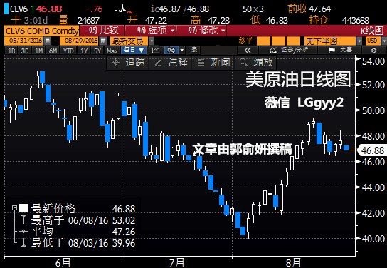 郭俞妍:非农携手各大数据来潮8月29日现货原油美盘前建议 消息面解读 因伊拉克原油产量增加、且伊朗单方面表示只有石油输出国组织(OPEC)成员同意它实现所能达到的市场份额,伊朗才会在接下来的OPEC冻产谈话中进行合作,受此影响,周一(8月29日)亚市早盘油价承压下滑。 而在伊朗方面,其产量距离制裁前水平已经只有一步之遥,