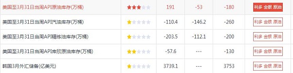 盘前资讯: 北京时间周三(4月5日)美国石油协会(API)公布数据显示,3月31日当周API原油库存减少180万桶,降幅超过预期。数据公布后,油价油价短线走高后回撤,呈宽幅震荡走势。 具体数据显示,美国3月31日当周API原油库存减少180万桶,预期减少53万桶,前值增加191万桶;API汽油库存减少260万桶,预期减少146.2万桶,前