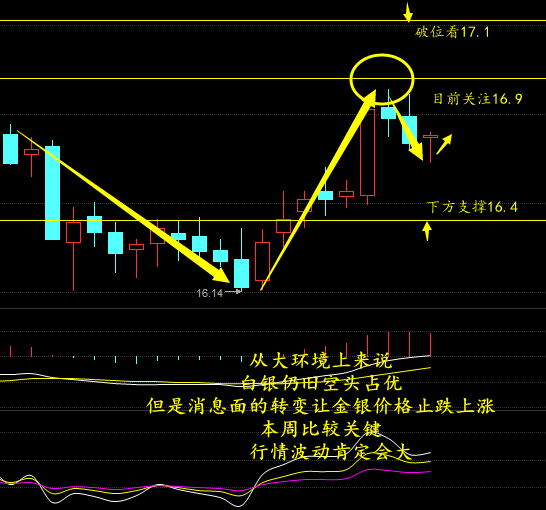 美元指数在近期大涨后有所回落,失守101整数关口,刷新近七个交易日低位至100.63,现货白银多头趁势大幅猛攻,刷新五个交易日高位至16.8美元附近,有望突破17美元。 今日白银跳空高开高走。主要受消息面:美国总统大选落幕迄今近3周,希拉里已经承认败选的情况下,上周六在得票数微不足道的绿党候选人吉尔斯坦提出威斯康辛