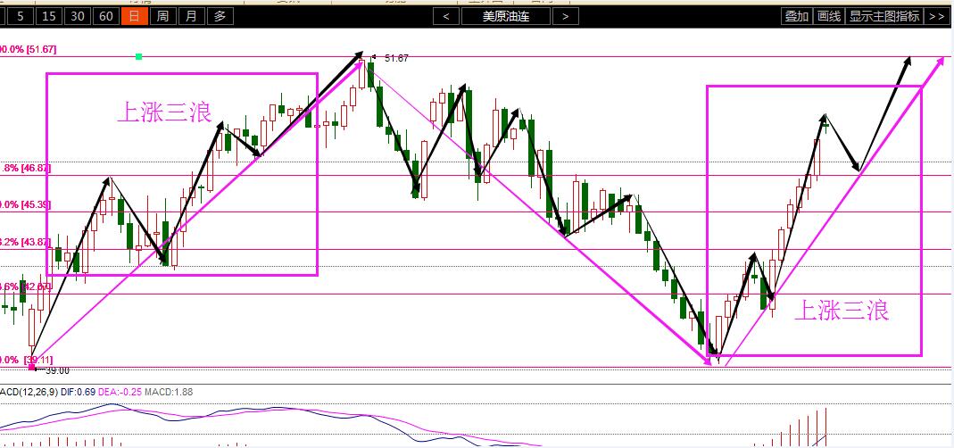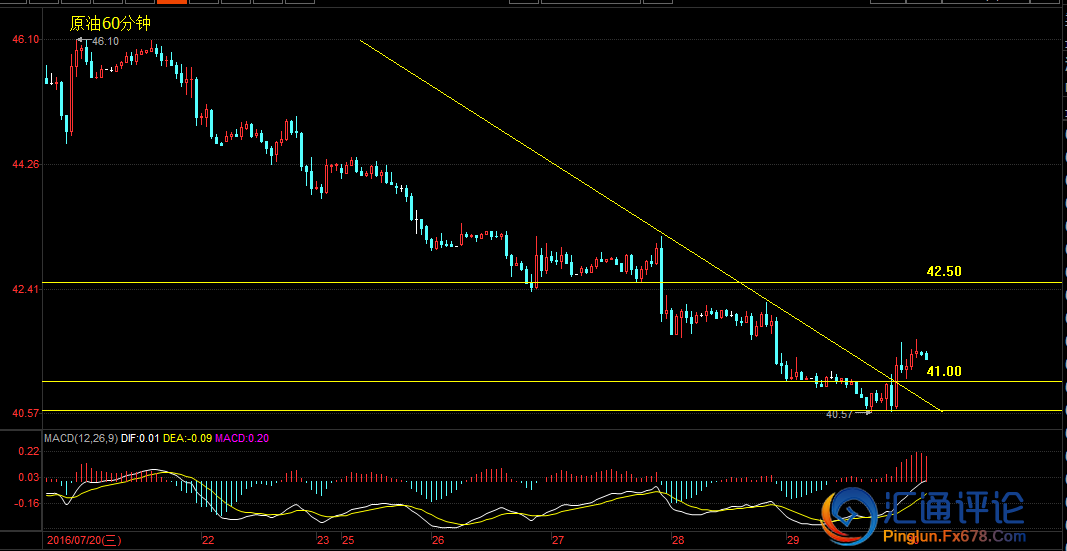 【原油解析】 日线级别,技术上看原油目前处于低位反弹,上周原油双针探底完成止跌反弹的第一步,本周在对冲基金的多头持仓之下加剧原油的反弹。技术上看,本轮原油反弹在V型反转之后,进行一波上涨三浪的技术性反弹。大趋势上在之后的三浪上涨和三浪下跌之后,完成M顶k线形态。 下周行情回落之后可继续做多,把握第三浪的