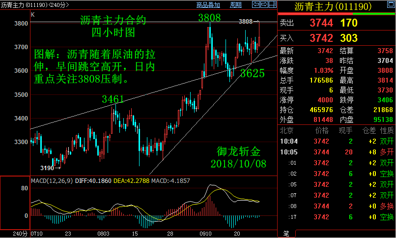 沥青主力;1812期货合约收盘3770元/吨,较前一日结算价上涨66元/吨,上涨幅度1.78%,持仓469082手,增加24974手,成交340458手,减少423734手。节后山东地区现货价格上调,幅度30元/吨左右,华东地区持稳,因前期调价过猛,且长假贸易商暂缓采购,炼厂库存出现一定程度的上涨,但整体仍维持在30%以下的相对低位,库存压力不大;供应端,委内瑞拉原油出口问题或将造成国内沥青原料短期扰动,彭博社公布8月份装船预计10月份到港的2艘委油假期期间已达新加坡,是否进一步前往中国仍未确认。叠加目前原油价格走势较好,成本面支撑明显,且市场需求在10月份可能有所改善,沥青价格稳健走势短期