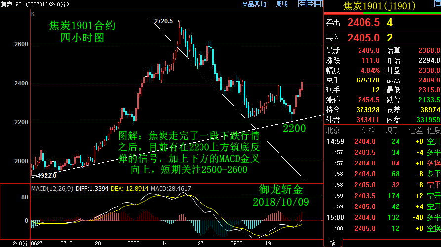 虽说节前美联储加息,钢材厂库和社库双增,市场被悲观情绪笼罩,但在长假期间,国内央行采取降准措施,鼓舞市场做多热情,提振节后国内黑色商品期货迎来大幅反弹的走势,其中焦炭和焦煤期货涨幅居前。焦炭主力1901合约在回撤至2200元/吨一线后,构筑完"W"底形态,展开连续反弹的走势,期价重回回升至2300元/吨一线附近。随着前景焦炭企业一轮降价结束以后,配合目前焦企库存偏低的优势,叠加环保政策仍未见松动迹象,预计未来焦炭期货有望筑底完成并展开一轮反弹上攻行情。 央行降准对冲美联储加息缓解资金趋紧预期 国庆长假之前,美联储如约在9月的议息会议上祭出加息决议,这引发全球市场较大的反应。其中美国10年期国