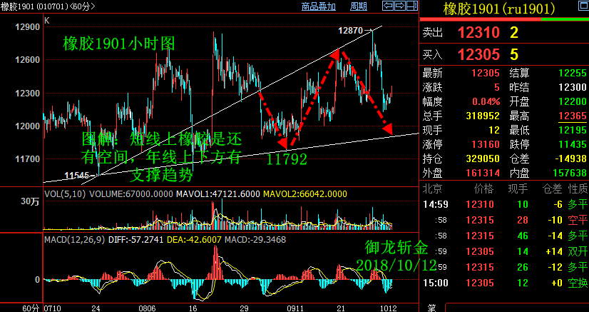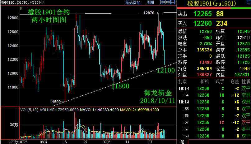 沥青主力;1812期货合约收盘3806元/吨,较前一日结算价下跌14元/吨,下跌幅度0.37%,持仓465612手,减少36258手,成交615622手,减少362234手。基本面上,整体需求平稳,受假期影响部分炼厂有优惠措施以刺激出货。进入10月份后,北方市场呈现下游道路施工旺季特征,对后市沥青期价形成利好支持。 橡胶主力;1901期货合约收盘12585元/吨,较前一日结算价下跌35元/吨,下跌幅度0.28%,持仓343858手,增加892手,成交335828手,减少404992手。现货方面,10月9日泰国USS3橡胶上涨0.16至40.46,下游轮胎厂开工率有逐步恢复趋势,但由于下游工厂