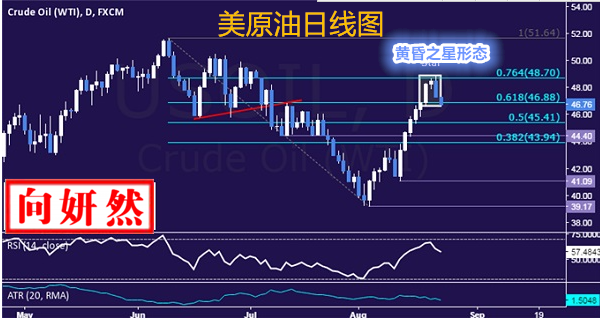 向妍然:8.23原油供给过剩多头梦碎反转下跌,沥青白银天然气操作建议,多空单被套怎么办?  一、供给过剩击碎多头美梦 油市繁荣终究是昙花一现 周一(8月22日),美国WTI原油10月期货收跌1.47美元,或3.03%,报47.05美元/桶。布伦特原油10月期货收跌1.72美元,或3.38%,报49.16美元/桶。中国燃油出口大增以及伊拉克和尼日