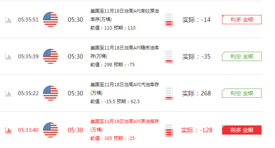 消息面 北京时间2016年11月23日05:30分,美国石油学会(API)公布了上周美国原油、汽油和精炼油库存情况,至11月18日当周API原油库存远大于前值和预期,精炼油库存也录得下降,唯有汽油库存增加。API数据的好坏参半,也使得结算后交易中油价没有出现较大波动。 另,OPEC维也纳会议也将在下周11月30日召开,就近日俄罗斯总统
