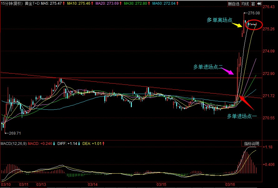 今日凌晨,美联储如期宣布加息25个基点,但随后的货币政策声明以及耶伦讲话均没有市场预期的偏鹰,市场推测美联储未来加息路径发生了变化,当前6月和9月加息的概率都有所降低。受此影响,美元快速下行,黄金TD短线快速拉涨,并一举刷新近6日新高。 面对此种行情,我们又该如何把握机会呢? 下面就针对此种走势,分析下黄金