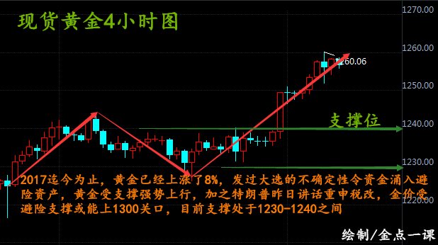 世界仍然处在高政治风险和全球普遍低利率环境之中,美国政府与中国和其他国家货币战争与贸易战争的还是有可能会支撑金价。所以在 这样一个情境下,选择股票,期货与黄金T+D是最正确的选择,但是股票近年来大盘走势一直很弱,期货需要的资金相对较大,相对而言,黄金T+D投资性最强,资金需求适中,黄金走势向好,多空均可操作