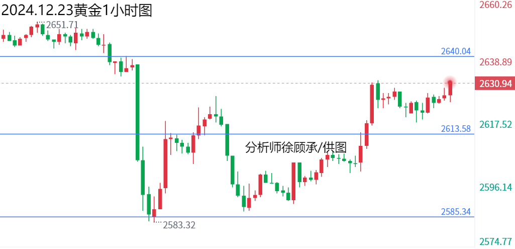 文/徐顾承: 过去这一周,黄金市场的走势可谓波澜起伏。周一与周二,盘面陷入震荡僵局,多空力量僵持不下,价格在窄幅区间内起起伏伏。而周三,美联储决议重磅出炉,如同投入平静湖面的巨石,激起千层浪,市场迅速作出反应,金价承压下行。不过,就在市场情绪略显低迷之际,周五峰回路转,PCE 数据低于预期的消息传来,如同给黄金注入一剂强心针,金价借机强势反抽,一举跃升至 2632 上方。 上周的会议表现,目前市场认为最早可能在 5 月会议上降息,概率为 62%。上周四的预期是最早在6 月降息,可能性为 65%。本周市场可能相对清淡,因为本周将迎来欧美国家的圣诞节假期,海外多数市场将会休市,经济数据也相对较少