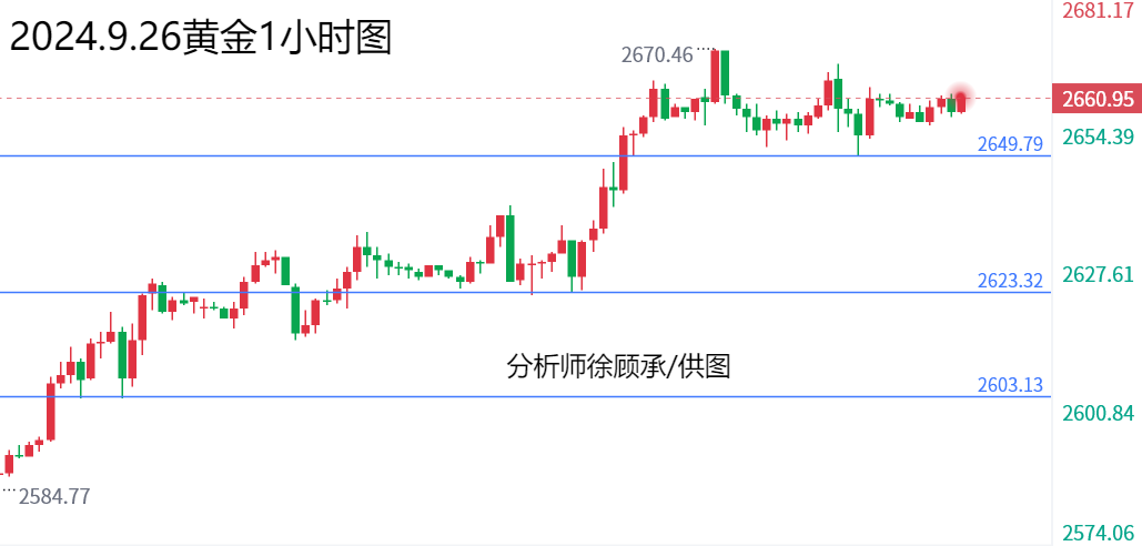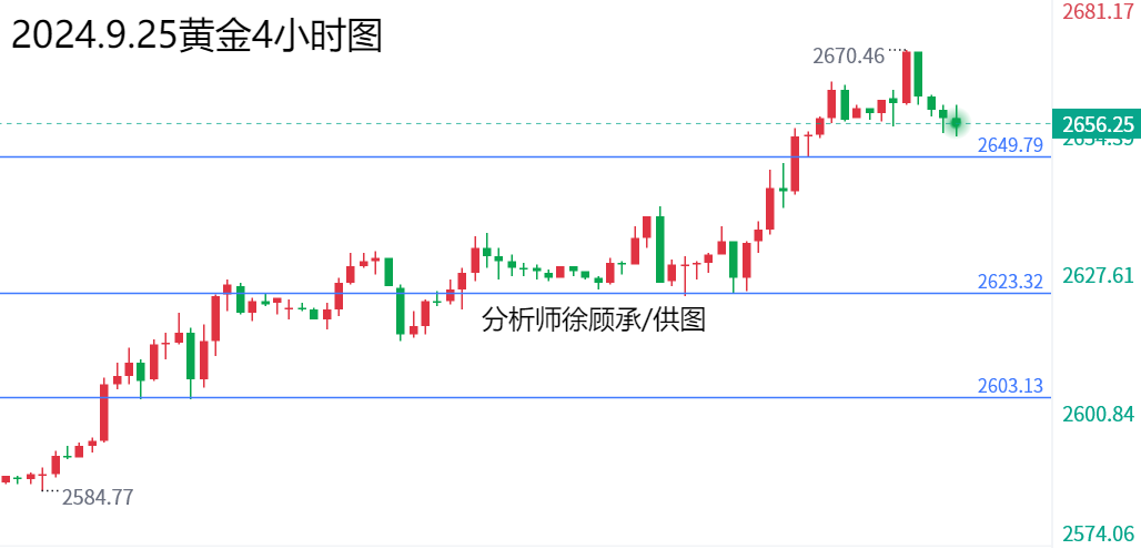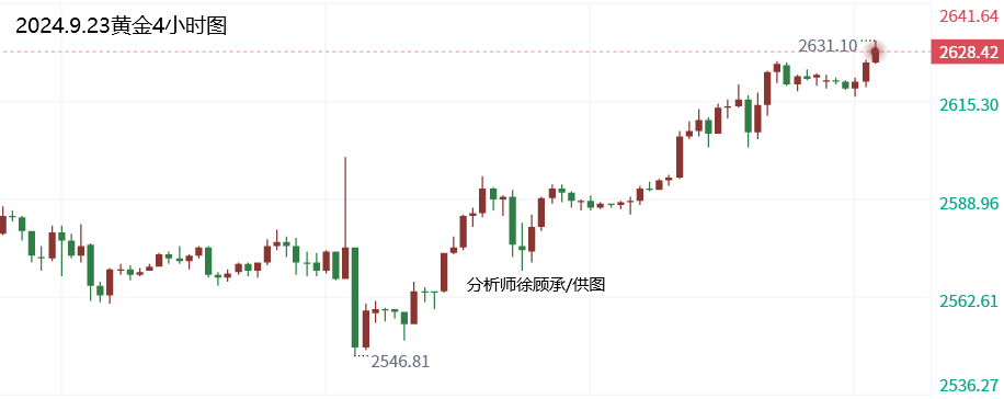 文/徐顾承: 美联储上周三大幅降息50个基点,启动宽松周期,这为金价的最新涨势再添活力。金价在2024年迄今大涨27%,势将创下2010年以来的最大年度涨幅,大家寻求对冲中东和其他地区长期冲突所引发的不确定性。大家需要继续关注市场对美联储未来降息预期的变化和地缘局势的相关消息,本周还将出炉美国8月PCE数据,这是美联储重点监控的通胀数据,大家需要重点关注。 上周五黄金价格总体呈现上涨的状态,当日价格最高上涨至2625.62位置,最低下跌至2584.69位置,收盘于2621.97位置。回顾上周五黄金市场表现,早间开盘后价格短线震荡后再度发力上行,欧盘前价格直接上破上周三高点位置,随后价格一直在