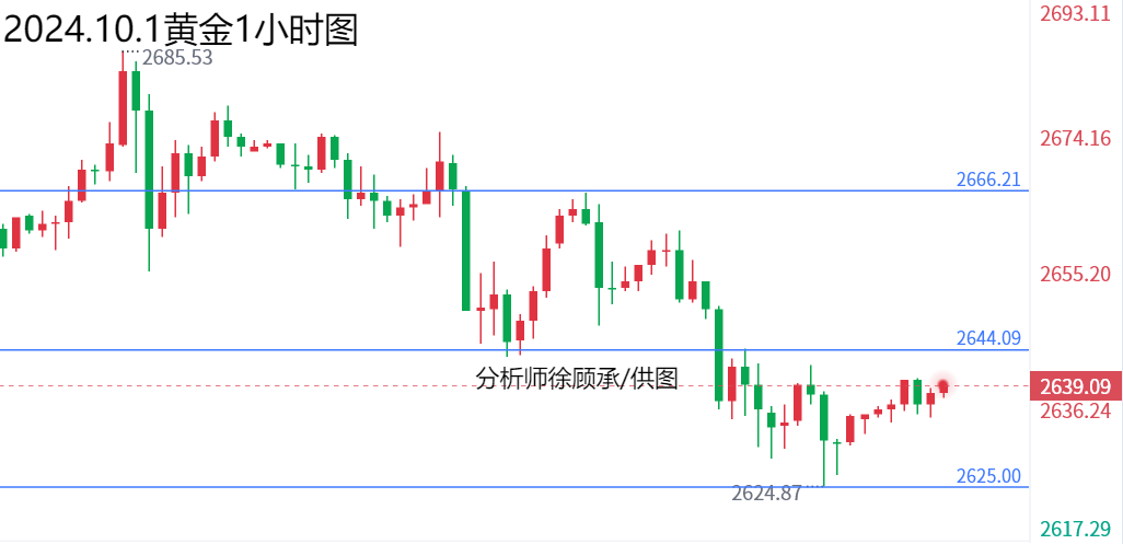 文/徐顾承: 北京时间10月1日(周二)凌晨,美联储主席鲍威尔在全美商业经济协会上发表偏鹰派言论,没有既定路线,将逐次会议作出决策。将“随着时间的推移”下调利率,并不急于快速降息。 关于济总体上是强劲的,当前没有任何迹象表明经济更有可能陷入衰退。劳动力市场过去一年已经降温,但依然稳固。为了实现2%的通货膨胀,不需要进一步降温劳动力市场条件。经济朝着可持续回归2%的目标取得了进一步的进展。如果经济表现符合预期,这意味着今年将再降息两次(每次降息25基点)。 黄金:隔夜我们给出2625附近的多,也如预期到达2640区域,目前行情依旧处于2640附近位置,整体上保持多头趋势,但并未有效站稳上方强阻