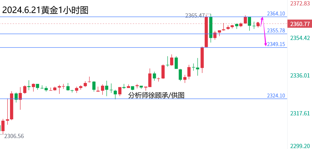 文/徐顾承: 如果你曾期待单边,那么请先学会拥抱震荡,少一点预设的等待,多一些当下的关怀,市场从未抱怨人们的愚昧,而人们却埋怨市场的不争气,没有人会随时给你力量,没有人能轻易让你依靠,要适应市场带来的一切,学着接受,才能懂得享受。 黄金:昨日早盘突破2335关键压力后,欧盘冲高2345后短线承压回落,二次测试2332一线后止跌起涨,并借助晚间初请数据的利多影响,在数据公布后半小时蓄力后继续强势上攻,突破2345后继续延续了20美元的上涨空间,高点来到2365一线。周四黄金价格主要受到美国经济数据放缓的提振,这加强了对美联储今年降息的预期的影响,按照预期在1小时上升趋势线企稳后强势上涨超过1%