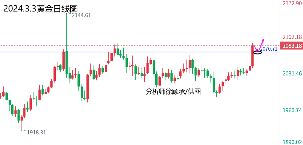 文/徐顾承: 孤独,就像城堡一样将我团团包围,一开始我还大声呼喊,试图通过高调与骄傲姿态引起注意,挥手警示高空是个不归路,可每呼喊一次,都被嘲笑与不屑所淹没,每一回的呐喊声,都被回调的狂欢所掩盖,记不清多少次之后,我放弃了救赎,就坐在盘前,抽着快要灭了的烟,眼睁睁地看着他们一个个被淘汰,我突然贪婪地学会了享受这份孤独。 消息面:近期令人失望的经济数据削弱了美元,为黄金提供了上涨的空间。数据显示,美国2月份制造业进一步下滑,制造业PMI为52.2,高于50.7的预期。此外,密歇根大学的消费者调查也显示疲弱。这些数据加强了市场对美国经济放缓的担忧,导致投资者转向避险资产黄金。特别是全球地缘政治局