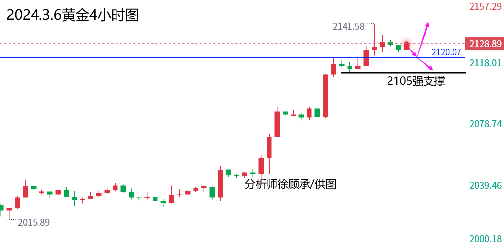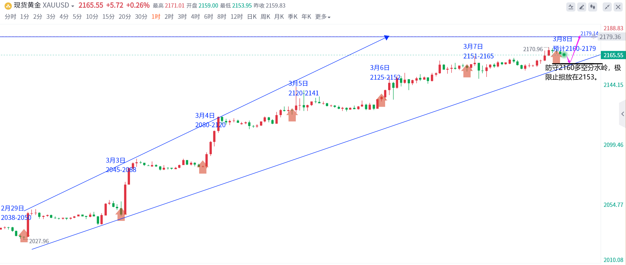 文/徐顾承: 得意时,朋友认识了很多;落难时认识了很多朋友,满仓时不认识市场,爆仓后市场不认识自己,只有在落魄时才懂得,愿意拉一把人何其少。只有在最穷时才懂再好的感情也难敌现实,只有在漫长的生活里才懂,人人能爱,但稍有人能忍。这世上要珍惜的是这三种人:陪伴一起走过贫苦的女人,雪中送炭的朋友以及天天写分析的徐顾承。 黄金:最近数据看,基本都是好坏不一,也就是说持续高利率没有让经济衰退,而是通胀预期下滑已经大概率,美联储官员的连续讲话可以看到,对降息都是在下半年也就是说6月以后降息三次达成共识。昨晚的消息面牵动着黄金上涨,数据我们没有去博弈,稳健的等消息面的影响消散后,再来布局单子进场,这是一个