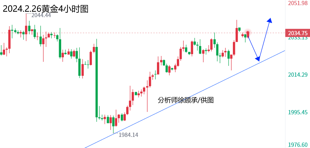 文/徐顾承: 志在山顶的人,不会贪念山腰的风景,人生是个圆,有的人走了一辈子也没有走出命运画出的圆圈,他就是不知道,圆上的每一个点都有一条腾飞的切线。平静的湖面,锻炼不出精悍的水手,安逸的生活打造不出时代的伟人,一片叶子跟毛毛虫交朋友,整棵树都要遭殃了,自己一定要与别人让你要有着本质的区别。时间过的很快,转眼一周的时间就要画上句号了。下面简单跟大家分析一下周五的一个基本行情。 基本面:美国劳工部公布的数据显示,上周初请失业金人数意外下降,表明2月就业增长可能保持稳健。这一数据加强了市场对美国经济强劲的看法,导致黄金价格回落。费城联储主席哈克表示,货币政策的下一步行动可能是降息,尽管他没有透露
