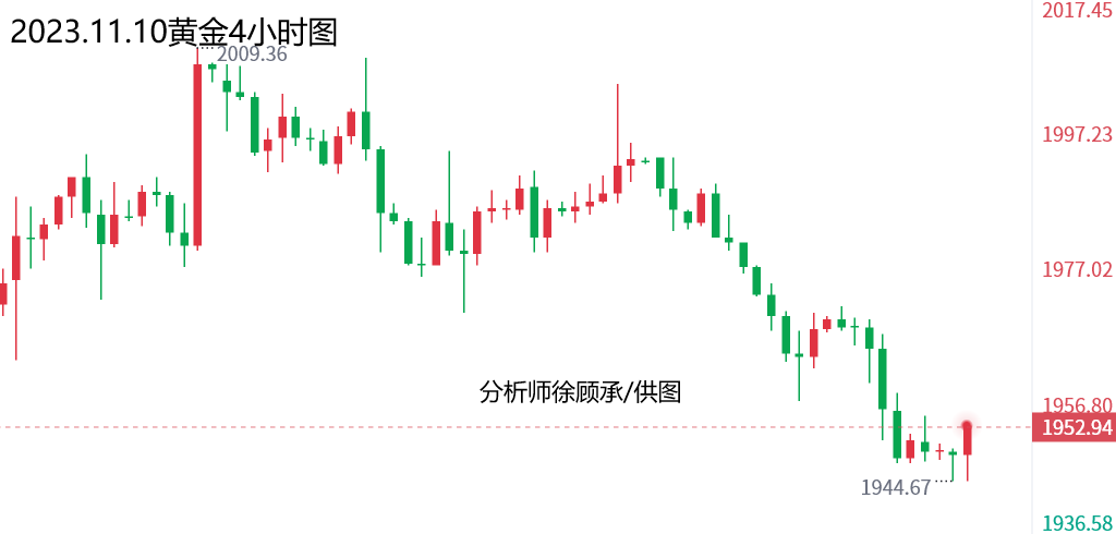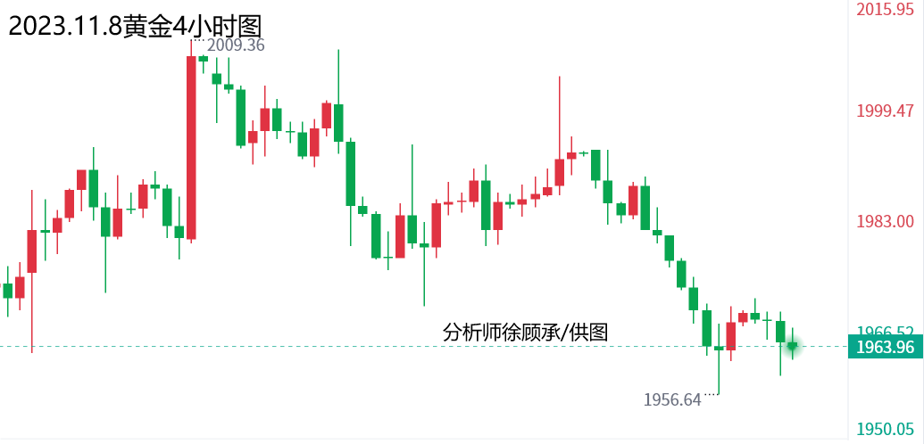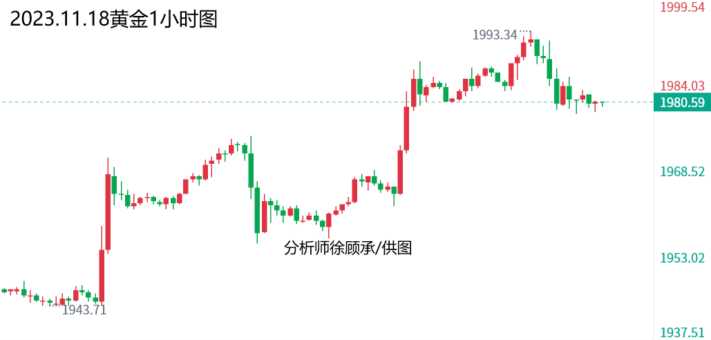 文/徐顾承: 多少人被市场打磨成少言寡语的模样渐渐力不从心,多少人被恐惧折磨成患得患失的习惯慢慢丧失斗志。人生,有很多无法预估的未来需要面对,交易,有太多无法集中的思路需要引导。自信一定是自我绝对的肯定,而盈亏则是对这种肯定的打分。人生没有白走的路,每一步都要算数,交易没有绝对的事,每一次都是尝试。享受的是过程,获得的才是结局。 黄金:上周五黄金价格总体呈现冲高回落的状态,当日价格最高上涨至1993.27位置,最低下跌至1978.48位置,收盘于1980.3位置。回顾上周五黄金市场表现,早间开盘后价格获得支撑再度上行,随后价格触及至下跌趋势线上边缘后进行再度承压,晚间价格并且破位前一日低点位