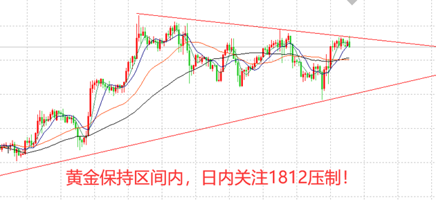 操作不在于多,而在于精准,利润不在于准确率,而在于盈亏比,当你真正弄明白二者之间的关系,你将真正开始学习投资。朋友你好,我是徐顾承,无论你现在盈亏如何,肯定都在积极备战。纵观黄金历史每天的波动幅度,只要我们抓住一小段趋势就堪比股市里面的一个月半年甚至一年的收益,所以没必要顶着高风险做回抽的行情,顺势即可! 黄金日内交易思路及操作策略: 黄金运行轮廓很明确,上方区间高点在1813,下方低点支撑在1794。四小时形态上来看,这一震荡区间已维持了9个交易日。在区间未能破位之前,继续保持这种思路即可。不去猜测破位时间点。跟随市场主导。 同时,需要注意的是,黄金若向下运行,必须跌破1788才能预示新一