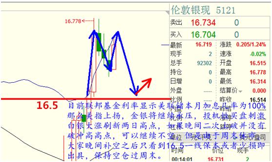 鸿门宴,项羽犹豫了一下,错过了天下;空城计,司马疑虑了一会,从而三分天下;滑铁卢,拿破仑多等一天,丢掉整个天下;当下,你犹豫一刻,今日的行情就已经启动;你行动的速度决定你成功的速度!佛渡有缘人!我带有心人! 行情回顾: 由于非欧佩克国家加入减产阵线,油价经过周初的修正之后开始逐渐复苏,虽然本周未能有效