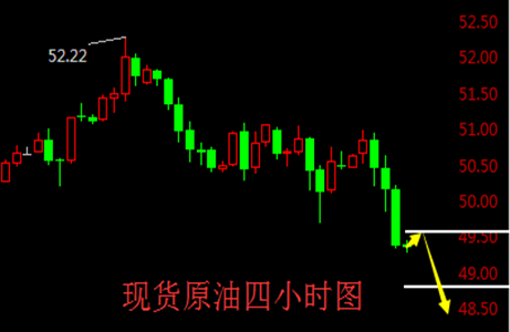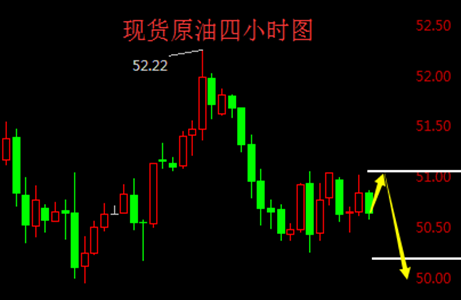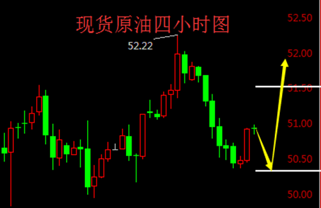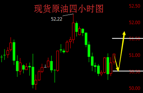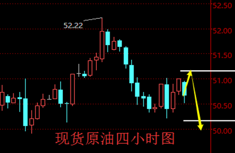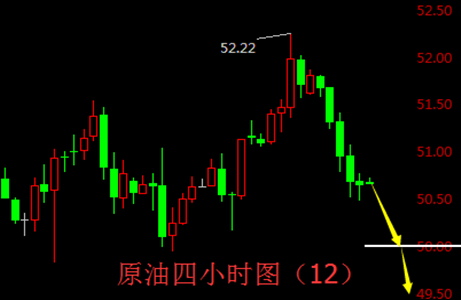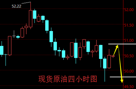 昨日油价大幅下跌,呈现单边下跌的行情。早间开盘在51.6附近,收盘在50.6一线,整体下滑1美元,跌幅逾2%。且走向十分规律,基本就是震荡数个小时,然后大幅下跌,之后都在延续这种情况。今日是周五,面临周线收官的问题,谨防黑天鹅再现。 失败是昨天的事情,今天必须以新的面貌来迎接。昨天早间的多单止损出局,预测的回落
