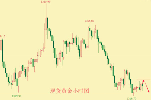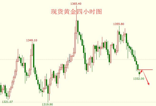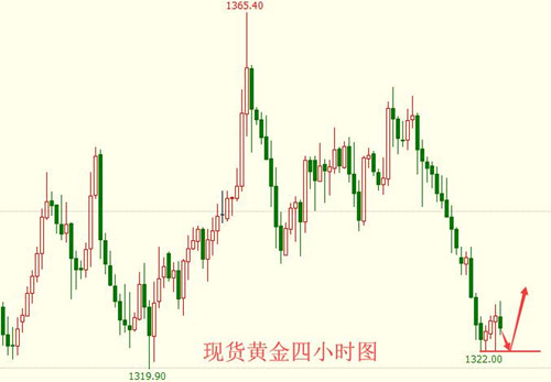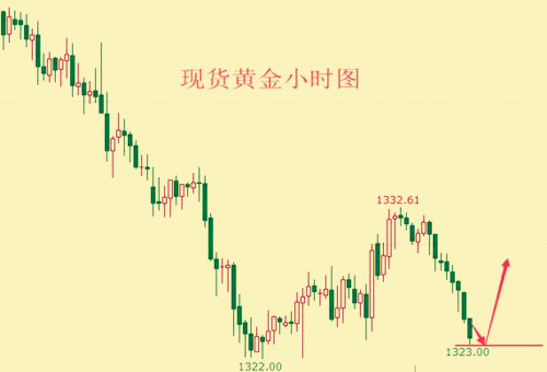 终究还是没能迎来上破,黄金触及1328后的反弹上升并未出现,且自早盘起,金价就一路下行,最低已经回落到1323一线。按照以往的情况来看,亚盘期间的走势一遍较弱,只是延续昨日的倾向小幅波动,但今日并非如此,下跌的趋势一直在延续,且在不断的加强。 市场受美指走强的影响,给予黄金的多头压力,导致日内金价持续下行。原