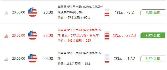 【EIA数据公布后先涨后跌的原因】 由于早间美国至7月8日当周API原油库存公布的实际值为增加220.7万桶,与前置减少673.6万桶形成强烈反差,使得市场投资者预期EIA库存数据将录得增加的可能性偏大,市场看空情绪浓厚。但是晚间EIA数据却没有预期表现的那么差,录得减少245.6万桶,与API的表现截然相反,使得数据公布后一开始