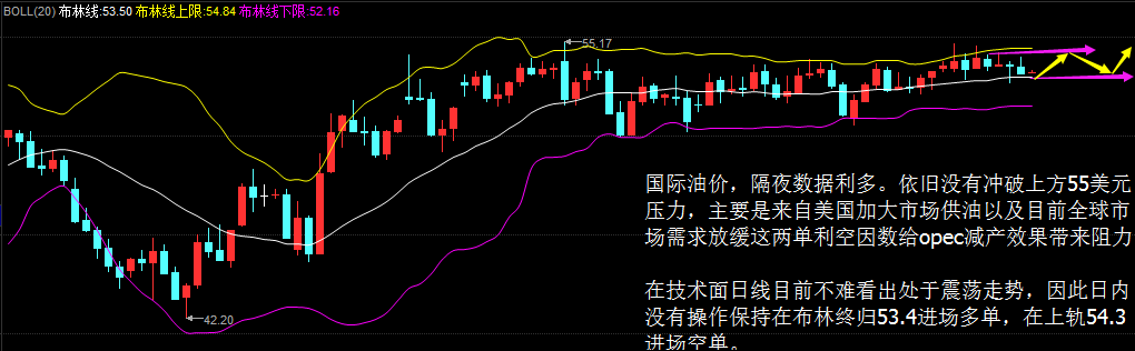消息面: 周三,主要受晚间美国能源信息署(EIA)公布的截至2月24日当周原油库存录得增加150.1万桶,库存连增8周将原油总库存推至历史新高影响,原油期货价格小幅收跌。纽约商品交易所4月份交割的WTI原油期货价格下跌0.3%,收于53.83美元/桶;伦敦洲际交易所5月份交割的布伦特原油期货价格亦下跌0.3%,收于56.36美元/桶。 虽