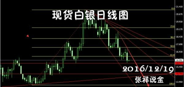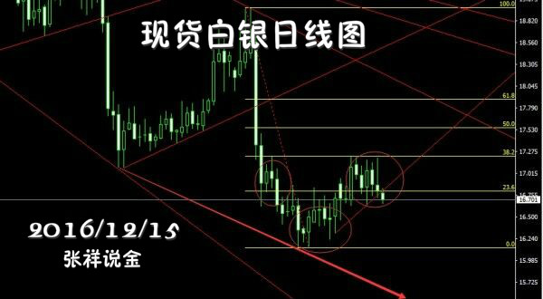 消息面分析: 上周美联储如预期相同,加息25%点,现货白银在加息前也是处于震荡下行的状态,但是加息前稍有反弹,在加息公布后立刻下跌,直到跌至几月来最低点。但是此次加息似乎依然很难改变现有局势,因此明年的再次加息将会真实可行,或许会加快步伐。 随着美国经济接近充分就业水平,工资增长将推动通胀压力上升。当前