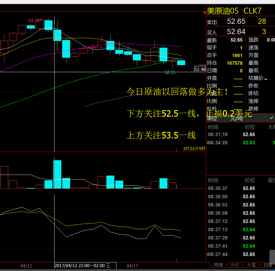前言: 止盈像呼吸一样自然,愿有一天我们能如山间清爽的风,让整个市场充满活力!投资这条路,不是看谁一夜暴富,而是应该稳健长期获利,走的远的必然是赢家! 虽然欧佩克月报显示3月减产目标减产完成度为104%,也上调了2017年全球原油需求预估值,但因担忧市场供应过剩,周三美布两油收盘双双下跌,结束此前连涨的趋势。