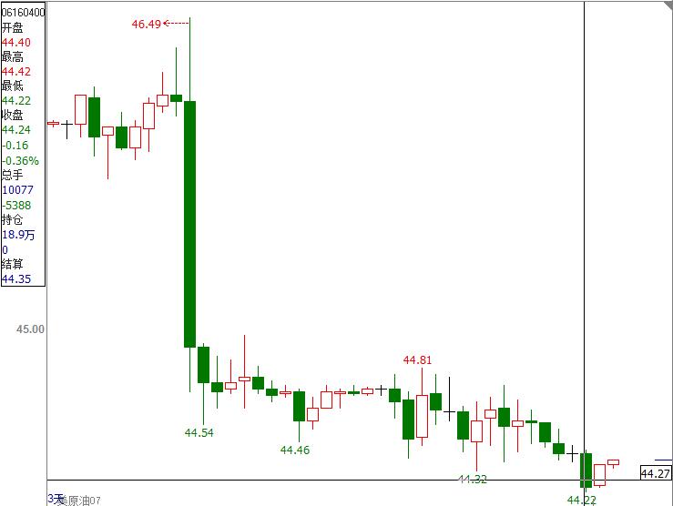 消息: 周三10:30美国能源信息署(EIA)公布的截至6月2日当周原油库存录得增加329.5万桶,结束连续8周的下降趋势,精炼油和汽油库存也录得大幅增加。数据公布后,油价短线下跌。 NYMEX最活跃7月WTI原油期货合约北京时间22:30-22:33四分钟内买卖盘面瞬间成交66125手,交易合约总价值约30亿美元。美油布油跌幅分别扩大至逾4.