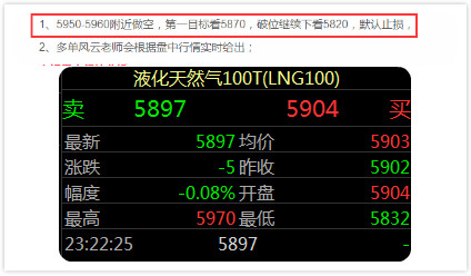 今日总结(点位可对比早间建议): 先说说主流产品天然气,天然气早间风云老师布局5950-5960进场空单,进场机会晚间才到来,5954进场后行情出现了震荡,最高到达5970,但是风云老师今天的高空思路是完全正确的,最低到达5900下方,尽管没有到达止盈点位,但是在5897稳健出局的朋友这波也是把握到了57点的利润,减去成本14点